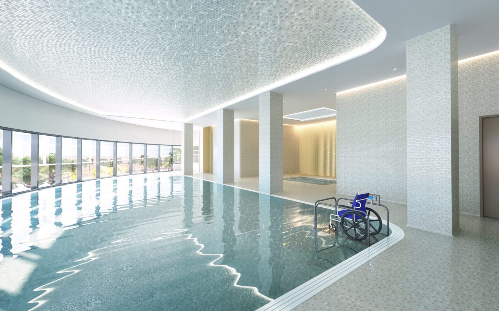 Each suite includes a seating area for the family that provides them with comfort and privacy, in addition to a private room for facilities that ensures a comfortable stay for the family throughout the treatment period.